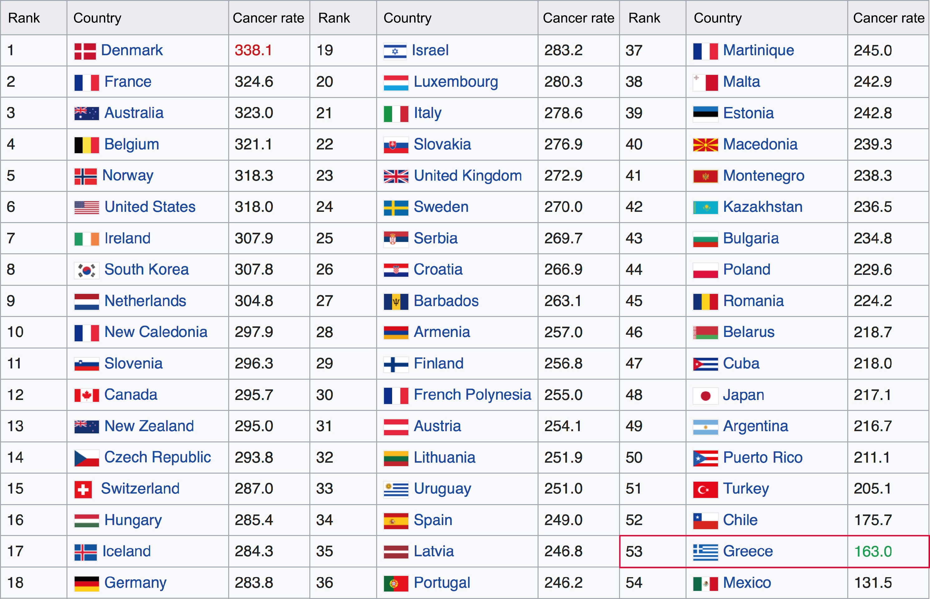 然而,臺灣男性癌症發生率為每10萬人口341.4人;女性癌症發生率則為每10萬人口271.4人。也就是說,臺灣男性癌症發生率還超過全世界第一名丹麥平均。